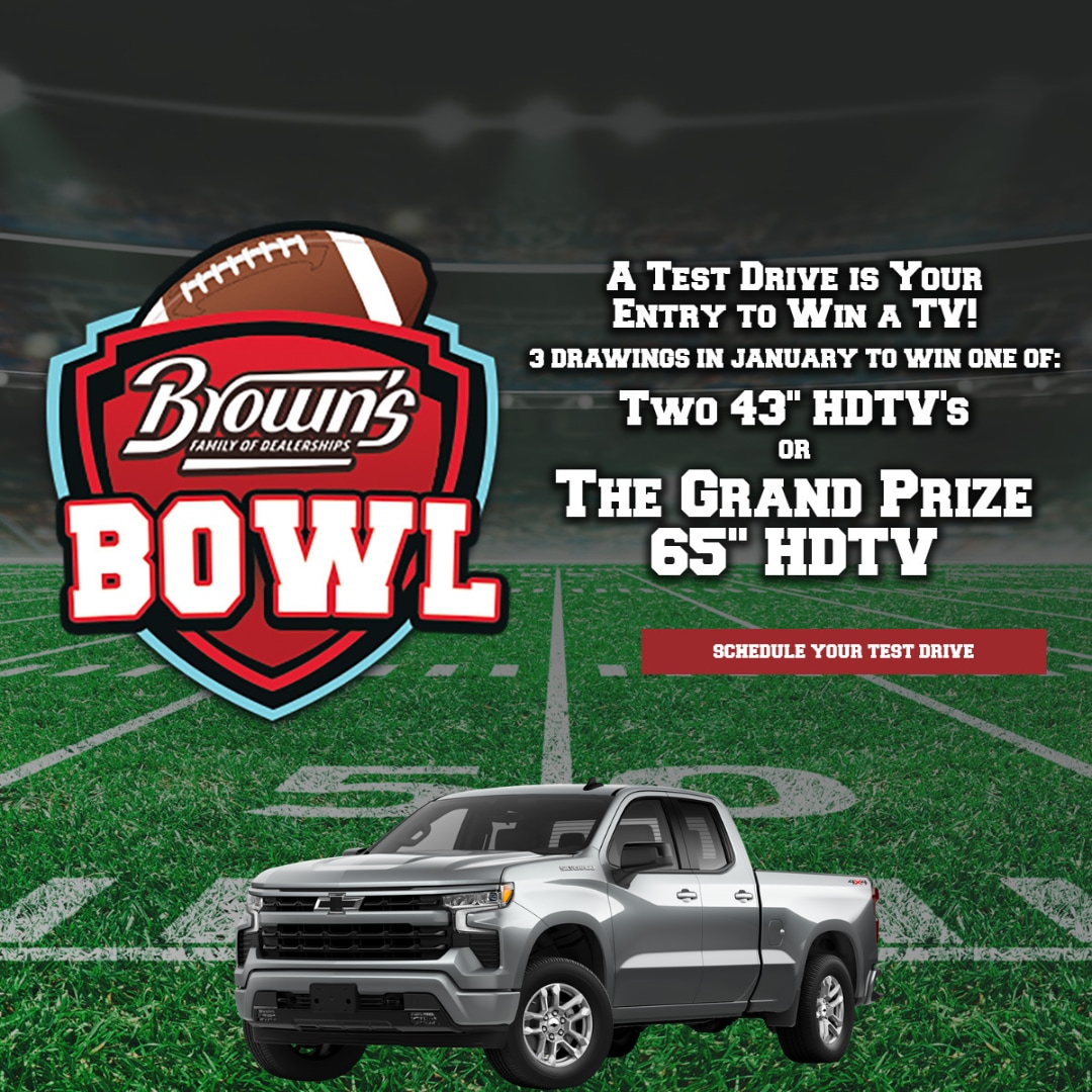 Take a test drive at any Brown's dealership and you'll be entered for a chance to win a big-screen TV - no purchase required. We've got some of our hottest deals below to give you a starting point.